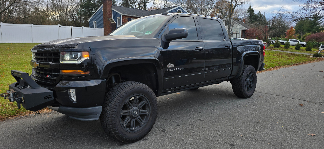 2018 Chevy Silverado Black Widow, professionally upfitted by Rocky Ridge Trucks. This is not your average Silverado — it’s a factory-authorized lifted performance truck with aggressive styling, premium comfort, and serious off-road capability.
